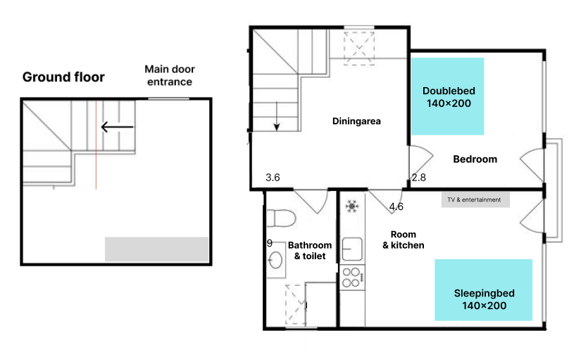 整栋房屋 · 可入住4位客人 · 1间卧室 · 1间客厅/厨房 · 1间浴室 · 1张双人床 · 1张沙发床